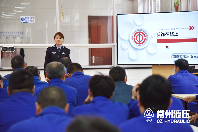 針對當前各類詐騙警情持續多發高發、詐騙手法變化多樣的情況,為進一步增強企業員工安全風險防范意識,提高對詐騙信息的甄別、抵御能力,常州液壓成套設備廠有限公司舉辦謹防詐騙宣教活動,邀請了常州市公安局武進分局錢警官擔任主講,由常州液壓總經辦朱主任主持,全體職工參加了此次活動。