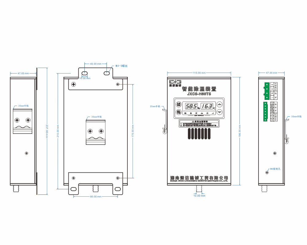 10、型號帶“T”的具有加熱功能,當檢測到箱體環(huán)境溫度低時,除濕裝置內部的風機和外部加熱器啟動工作。