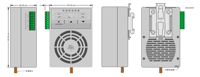 10、型號帶“T”的具有加熱功能,當(dāng)檢測到箱體環(huán)境溫度低時,除濕裝置內(nèi)部的風(fēng)機和外部加熱器啟動工作。