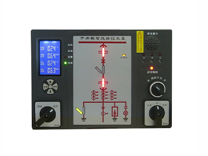 智能操控裝置具有一次回路模擬圖及開(kāi)關(guān)狀態(tài)指示,高壓帶電顯示,自動(dòng)溫濕度控制,人體感應(yīng)自動(dòng)照明,語(yǔ)音提示,電參數(shù)測(cè)量及RS485通訊接口等眾多功能,集操作、顯示于一體。