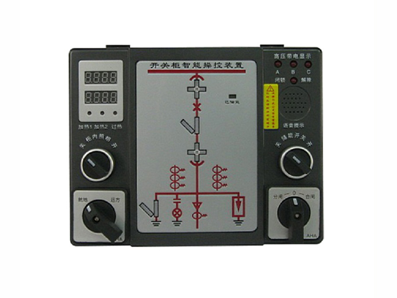 智能操控裝置具有一次回路模擬圖及開關(guān)狀態(tài)指示,高壓帶電顯示,自動(dòng)溫濕度控制,人體感應(yīng)自動(dòng)照明,語音提示,電參數(shù)測量及RS485通訊接口等眾多功能,集操作、顯示于一體。